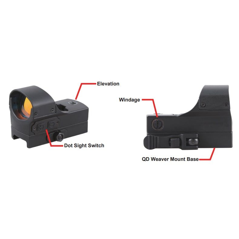 نقطه 3 MOA؛ گزینهٔ دایره 40 MOA؛ حالت ترکیبی (دایره + نقطه)